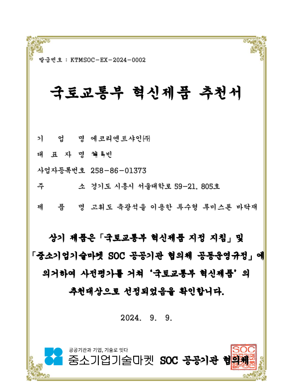 제품,기술,시공등 정보는 : 에코리엔트샤인(주) (ecoshine153.com)