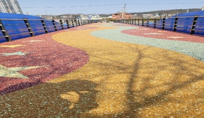 - 포설 및 다짐: 배합된 재료를 시공면에 포설한 후, 흙손 등의 도구를 이용해 표면을 평평하고 단단하게 다집니다. 패턴이나 문양을 넣을 경우 이 단계에서 디자인에 맞춰 정교하게 작업합니다. (예: 양평 단월 산책로의 별, 달 문양)