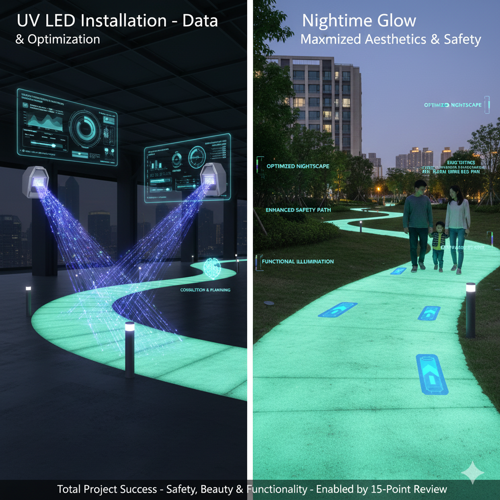 | 5 | 색상 및 디자인과의 조화 | 다양한 색상의 축광 소재가 디자인 의도와 주변 경관에 잘 어울리는지, 다색 시공 시 작업 효율을 고려한 우선순위를 결정합니다. (Source 1.1) |