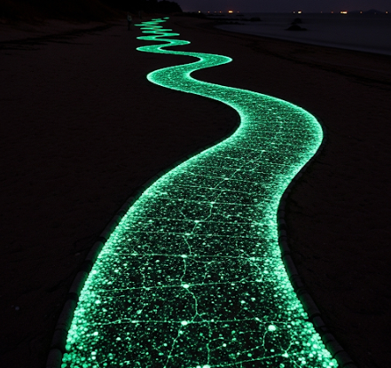 축광석은 햇빛이나 조명 등 빛을 흡수하여 저장했다가 어두워지면 스스로 빛을 내는 특별한 소재입니다. 별도의 전력 소모 없이 자연 친화적으로 밤을 밝힐 수 있어, 야간 경관 조성에 탁월한 효과를 발휘합니다. 특히 해변 산책로에 적용하면, 낮 동안 햇살을 가득 머금은 축광석이 밤이 되면 은은하게 빛나며 환상적인 분위기를 연출합니다.