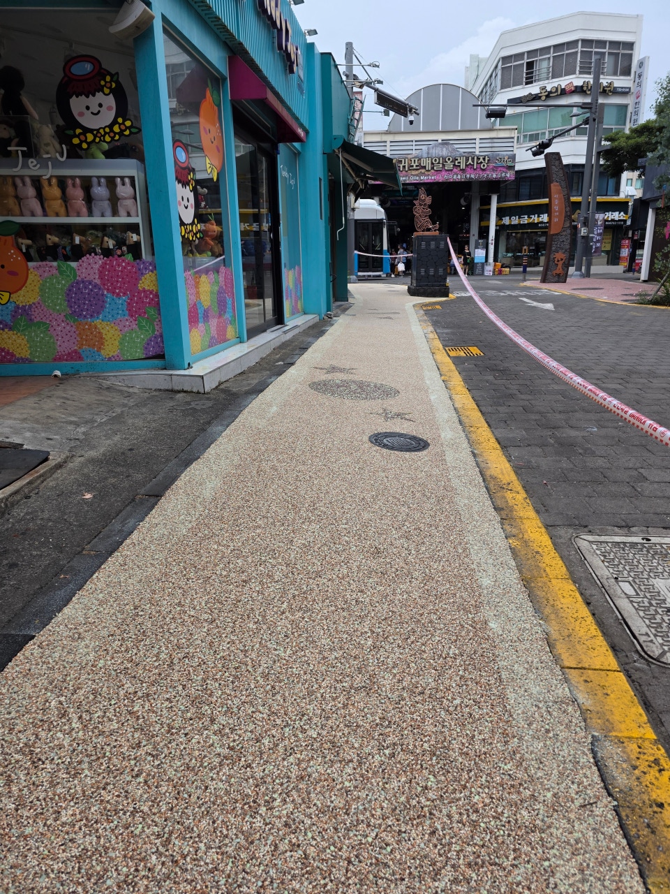 - 포설 및 다짐: 배합된 재료를 시공면에 포설한 후, 흙손 등의 도구를 이용해 표면을 평평하고 단단하게 다집니다. 패턴이나 문양을 넣을 경우 이 단계에서 디자인에 맞춰 정교하게 작업합니다. (예: 양평 단월 산책로의 별, 달 문양)