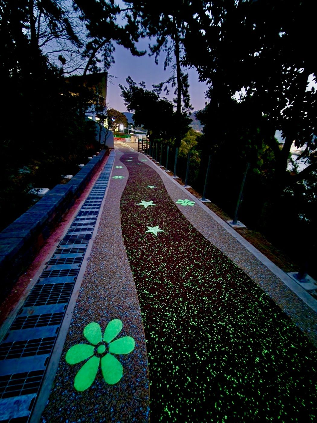 - 별빛 길의 탄생: 해가 지고 어둠이 찾아오면, 낮 동안 빛을 흡수한 루미스톤들이 약속이나 한 듯 푸른빛 또는 초록빛을 발산합니다. 마치 밤하늘의 별을 바닥에 옮겨 놓은 듯 환상적인 야경이 연출됩니다. (사진: 단월11.jpg 참고)
